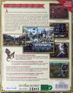 Heroes of Might and Magic III: The Restoration of Erathia est un jeu vidéo de stratégie au tour par tour développé par New World Computing et publiée par The 3DO Company en février 1999 sur PC puis en décembre de la même année sur Macintosh et Linux. Une version Dreamcast est également un temps envisagée, pour une sortie en 2001, mais celle-ci est finalement annulée. Il est le troisième épisode de la série et fait suite à Heroes of Might and Magic II. Il se déroule dans le même univers médiéval-fantastique, peu après les événements de Might and Magic VI, et relate les affrontements liés à la reconquête d’Erathia par la reine d’Enroth, Catherine Ironfist. Comme ses prédécesseurs, il combine deux phases de jeu distinctes, une phase stratégique et des combats tactiques, et intègre des éléments de jeu vidéo de rôle. Il y apporte cependant plusieurs améliorations, aussi bien au niveau des graphismes que du gameplay qui se voit enrichi par l’ajout de nouvelles factions, d’un système de héros plus complet et d’une nouvelle dimension avec l’introduction d’un niveau souterrain.